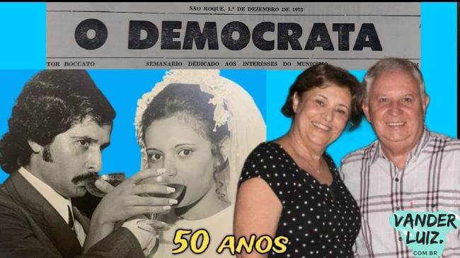 Neste dia 1º de dezembro de 2023, parabéns ao casal Ângela Maria e José Luiz Allegretti que completa 50 anos de união.