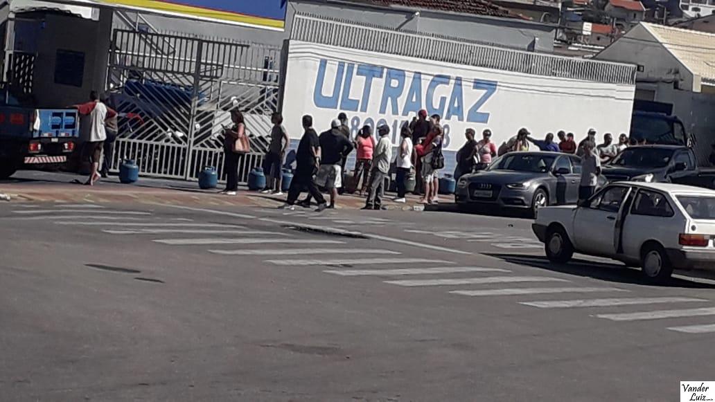 Uma enorme fila se formou na manha desta quinta-feira, dia 2, em frente a uma distribuidora de gás, localizada na Avenida Bandeirantes, em São Roque.