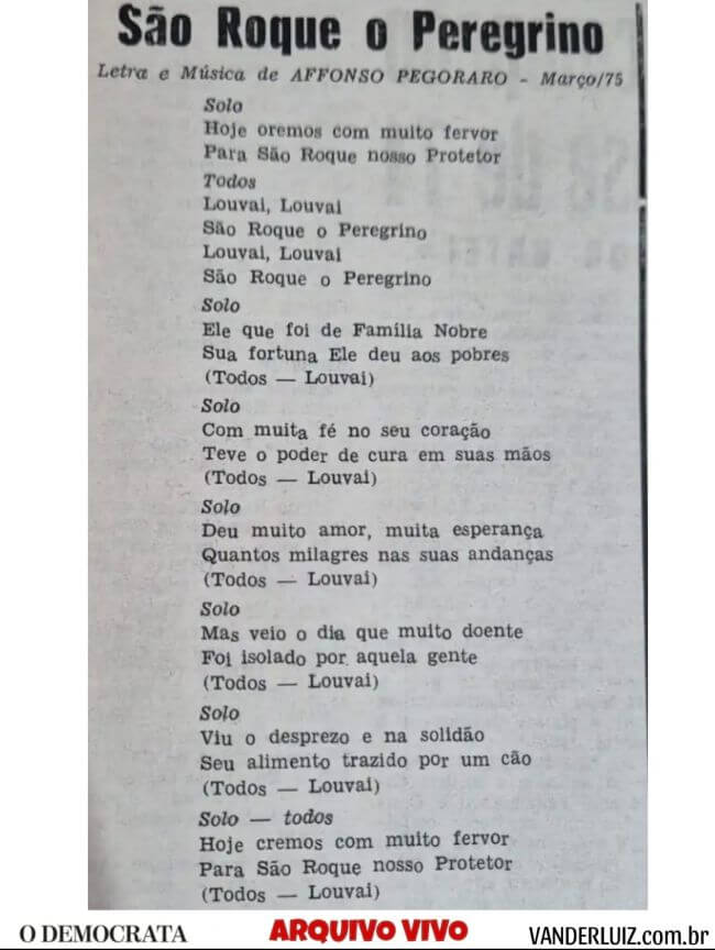 São Roque o peregrino hino música 650