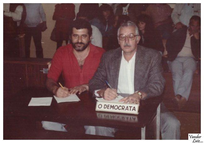 Os jornalistas Roque Alves de Lima e Élcio Roque Boccato na mesa da imprensa na Câmara Municipal de São Roque, na rua Padre Marçal. Não tenho a data exata, mas foi entre o final dos anos 80 e início dos anos 90. Foto enviada pelo grande colaborador e amigo José Carlos Baroni Garcia (Zé Balaio).