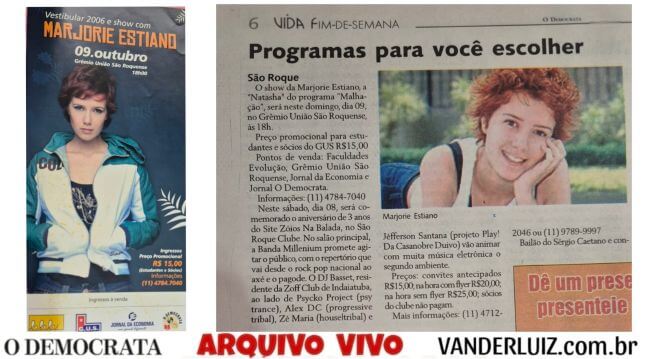 Em 2005, O Democrata circulou com um encarte do show de Marjorie Estiano, marcado para 9 de outubro, no Ginásio do Grêmio. A atriz e cantora começava a despontar no cenário nacional. Em 2004, interpretara a vocalista Natasha da “Vagabanda” (na novela Malhação). Ela havia acabado de lançar seu primeiro CD.