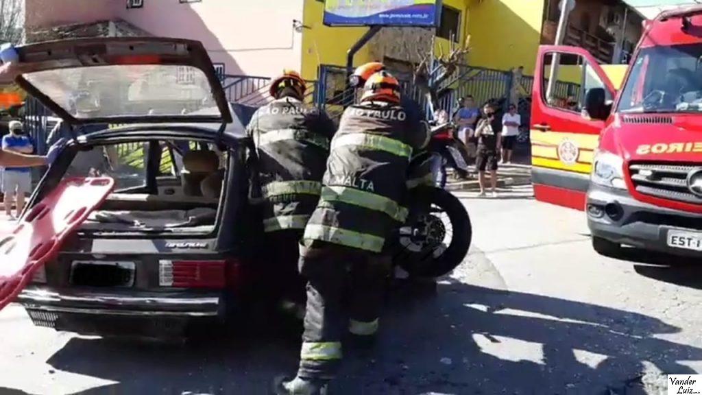 A moto ficou “cravada” na lateral do veículo, mas apesar do impacto as cinco pessoas envolvidas no acidente não sofreram ferimentos graves e foram atendidas na Santa Casa de São Roque.