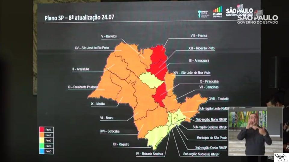 A nova classificação vale para as próximas duas semanas a contar de segunda-feira (27). A regiões de Campinas e Araçatuba passaram para a Fase Laranja e Araraquara subiu para a Amarela.