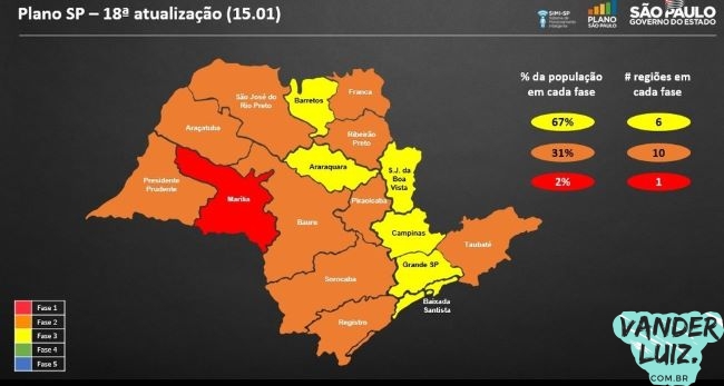 Também permanecem na Fase Laranja as regiões de Registro e Presidente Prudente.
