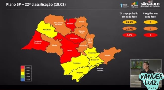 Duas regiões regrediram, Barretos e Presidente Prudente que agora estão na Fase Vermelha, ao lado de Bauru e Araraquara.
