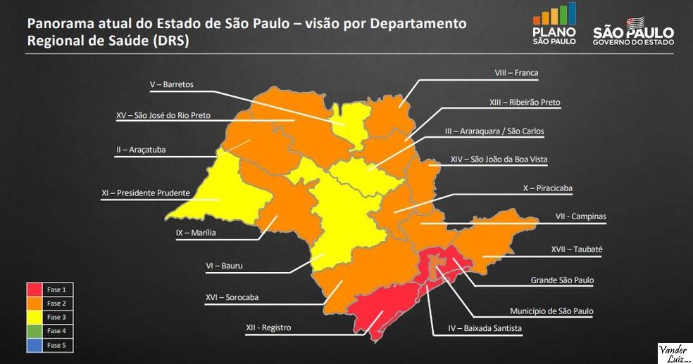 O Plano São Paulo tem cinco fases divididas por cores. Semanalmente será feita uma avaliação técnica. Abaixo todas as fases.