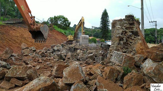 O pontilhão da antiga linha férrea, no km 1 da Rodovia Quintino de Lima, foi demolido na tarde desta terça-feira (10), com a utilização de duas máquinas retroescavadeiras. O serviço é realizado pelo DER (Departamento de Estradas de Rodagem) em parceria com a Prefeitura de São Roque e uma empresa particular a Naco Base Terraplenagem.